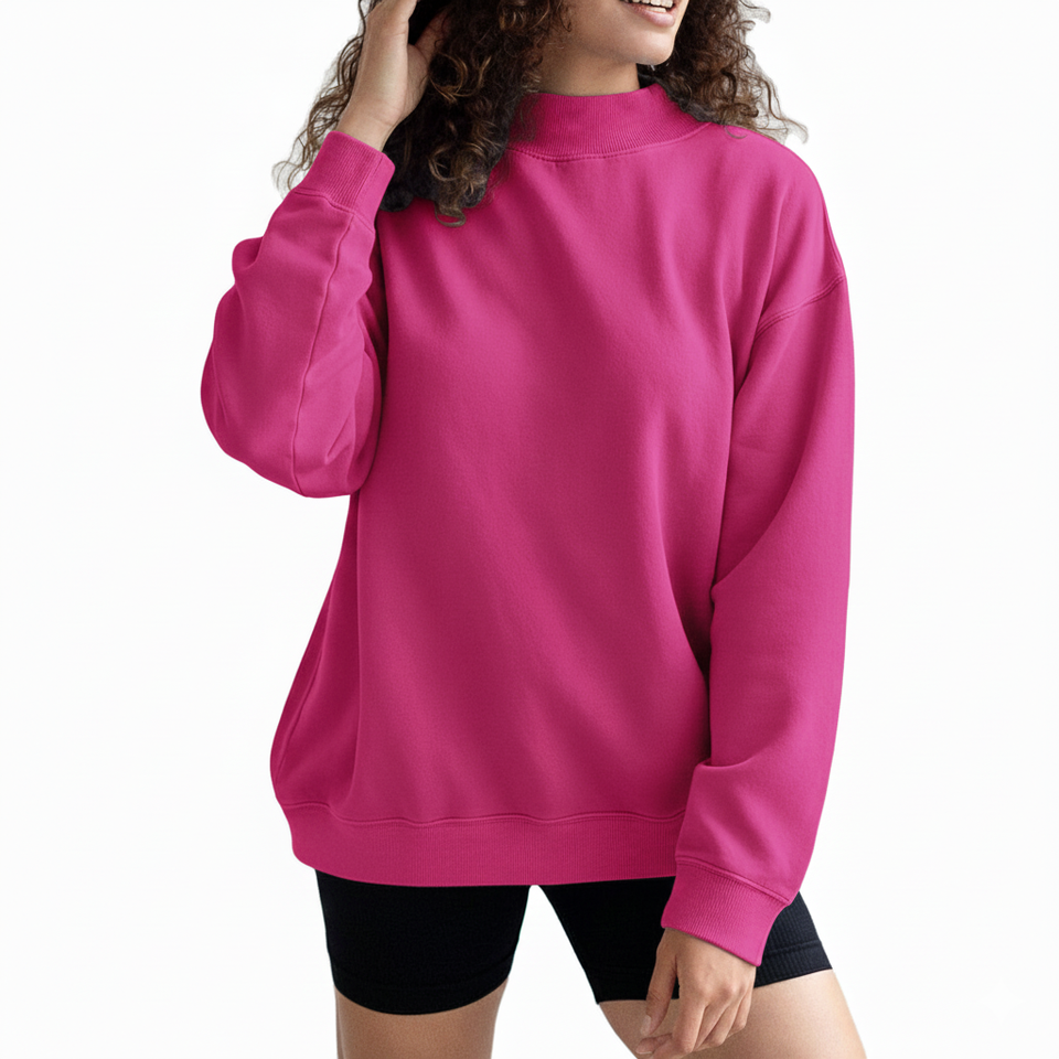 Custom Logo Winter Women's Soft Cotton Turtleneck Front Embroidery Fleece Oversized Pullover Streetwear Sweatshirt
