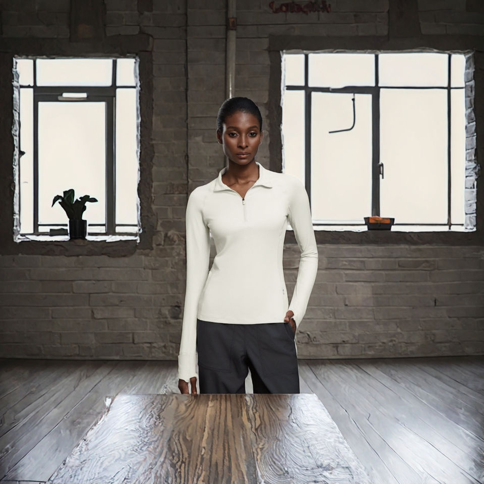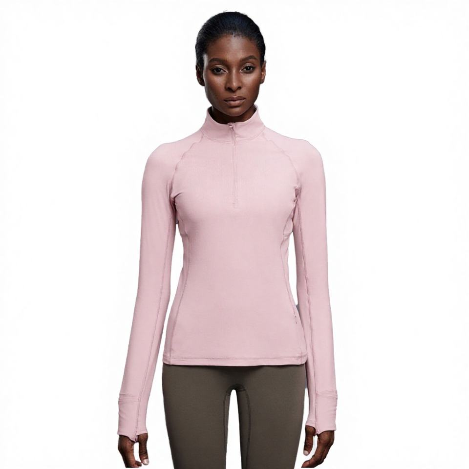 Custom Logo Women Half-zip Stand Collar Gym Fitness Top Long Sleeves Regular Fit Pilates Yoga Thumbhole Breathable Spandex