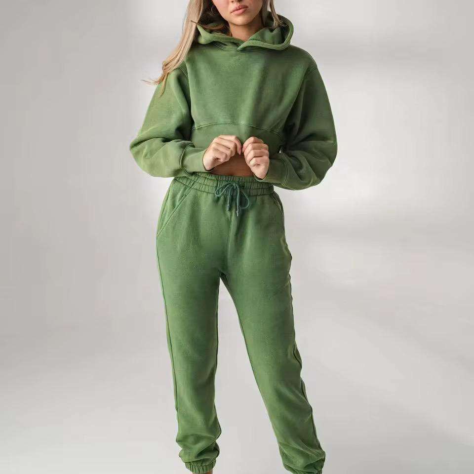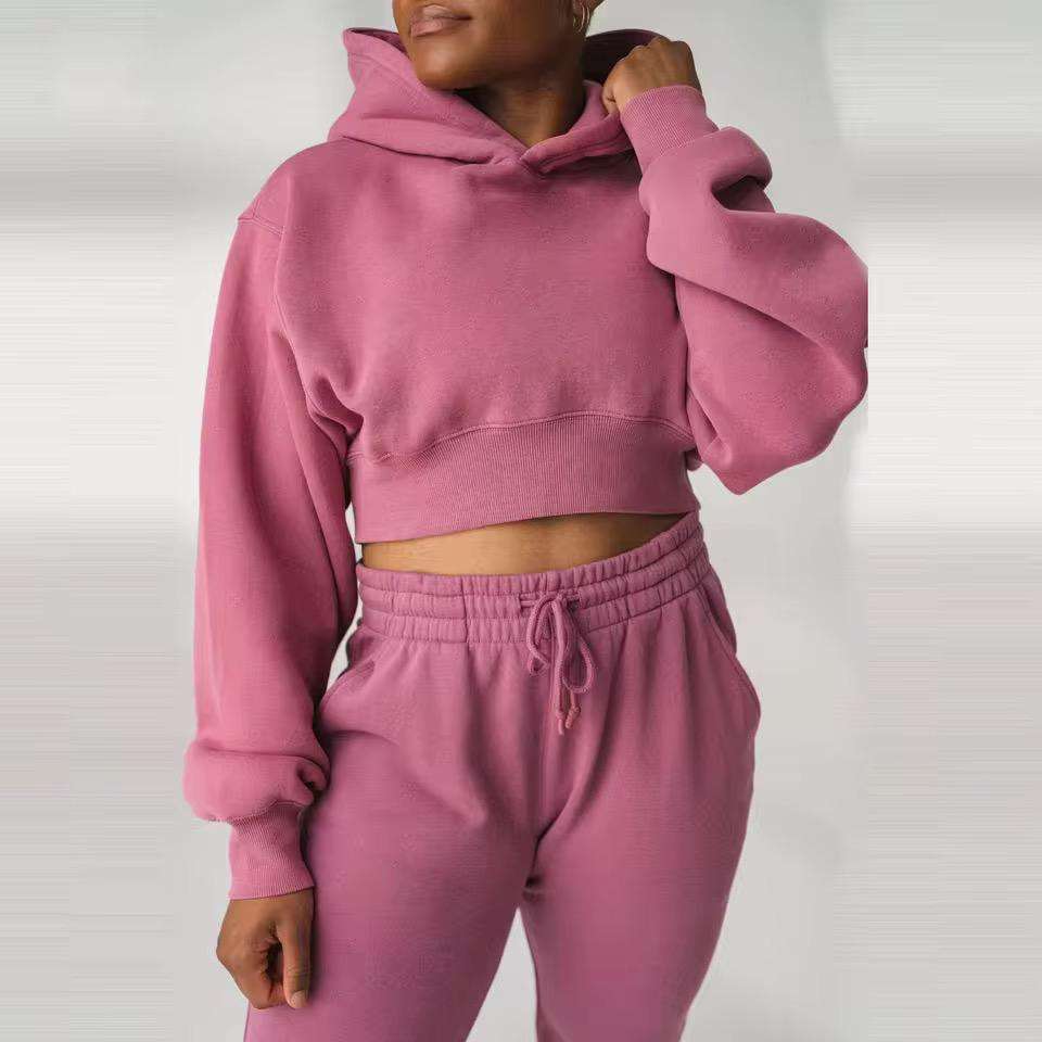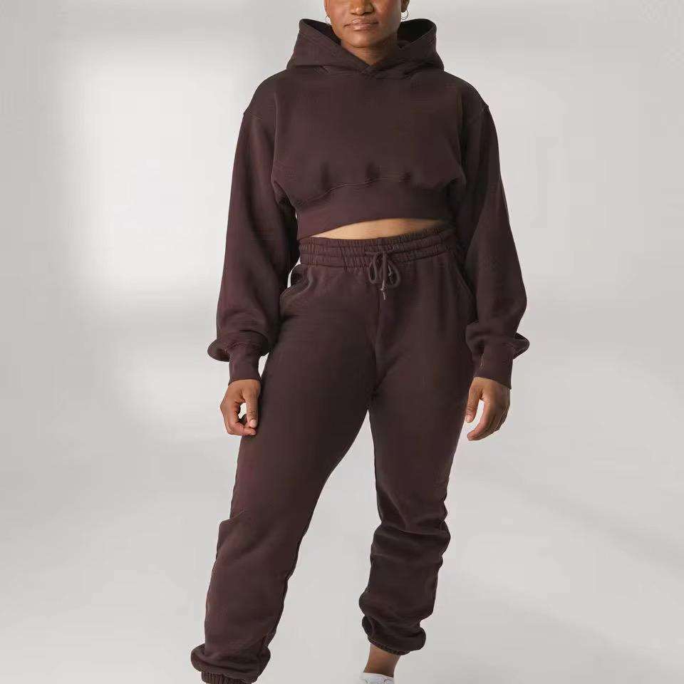 Custom Logo Women Tracksuits Cropped Hoodie Set Blank Sweatpants and Hoodie Set Crop Hoodie Pants Suit Women's