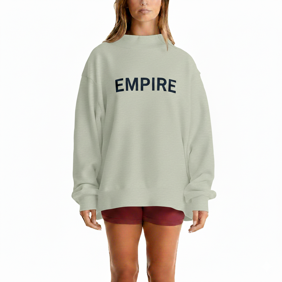 Custom Logo Women's Long Casual Solid Oversized Fleece Pullover Soft Cotton Embroidery Mockneck Sweatshirt