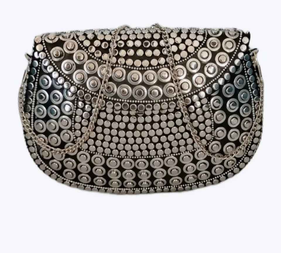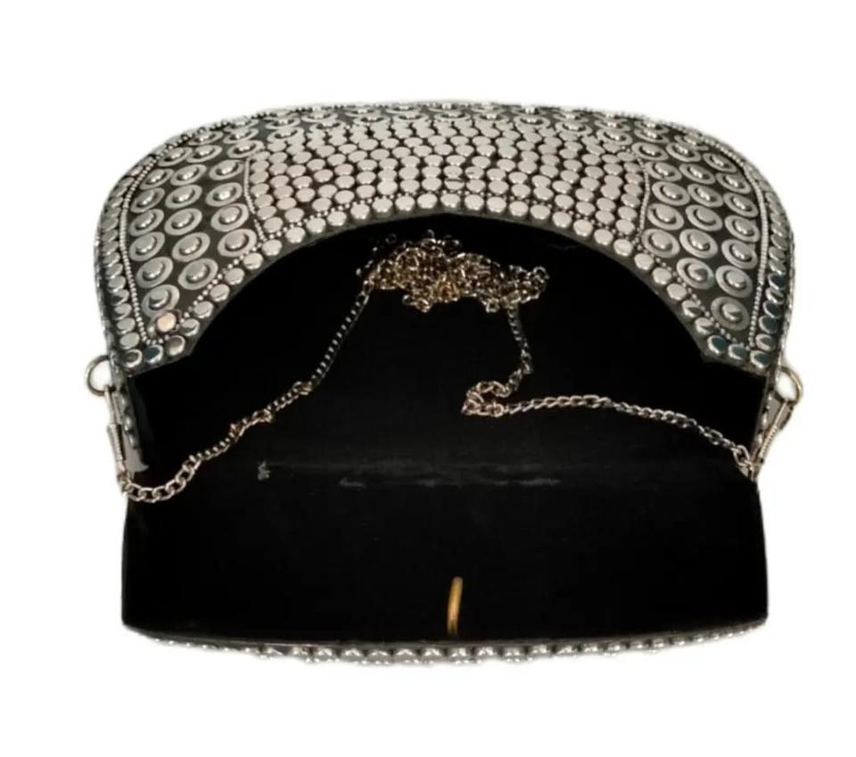 Custom Logo Women's Metal Clutch Bag Purse Luxury Metal Stud & Rhinestones Design Handmade Bags Silver Evening Birthday Gifts