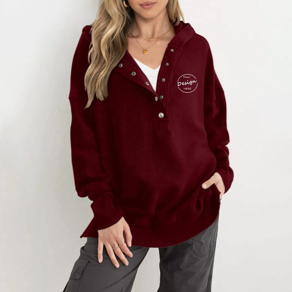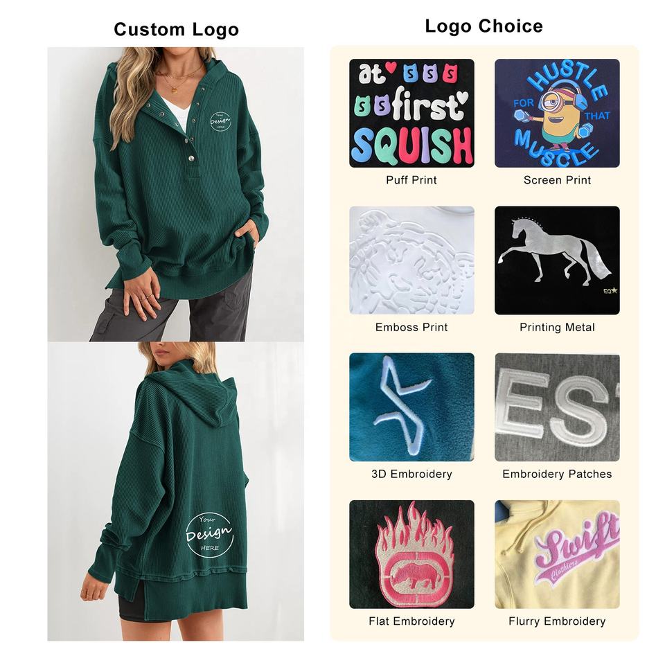 Model Number:Custom Button V-Neck Oversize Hoodies
