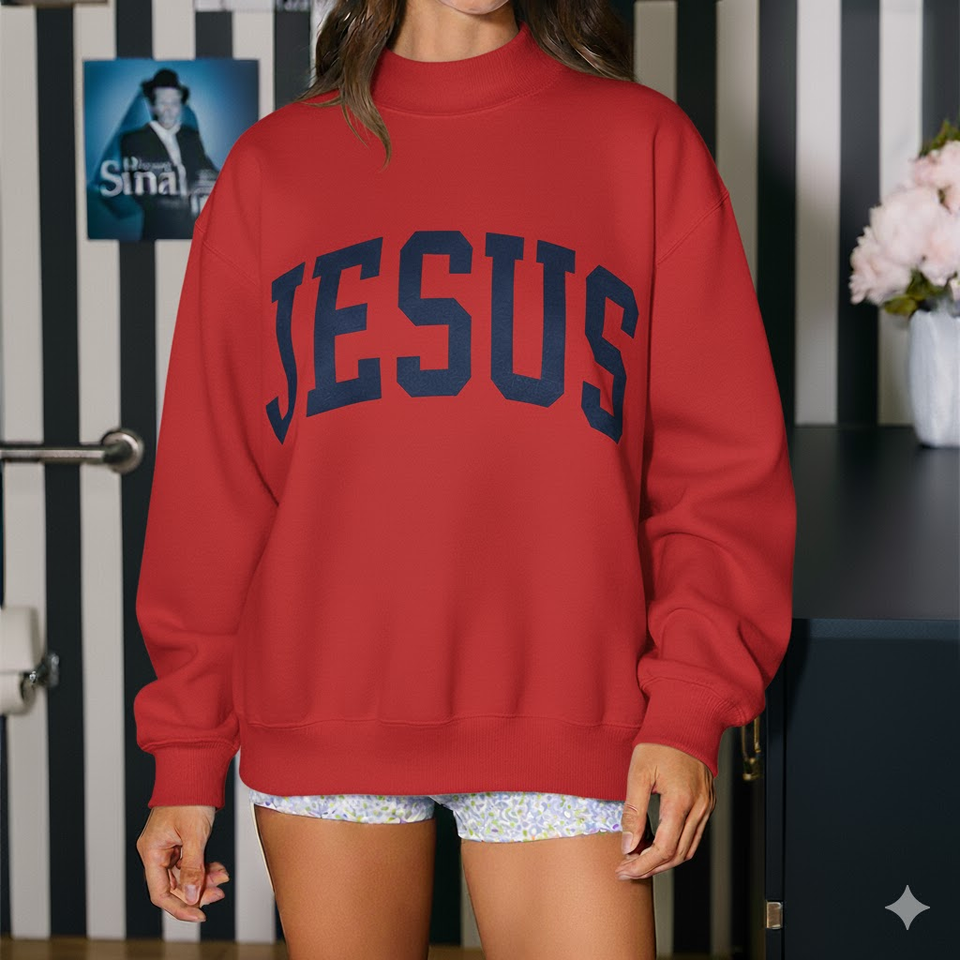 Custom Logo Winter Women's Polyester/Cotton Turtleneck Oversized Pullover Sweatshirt with Front Logo