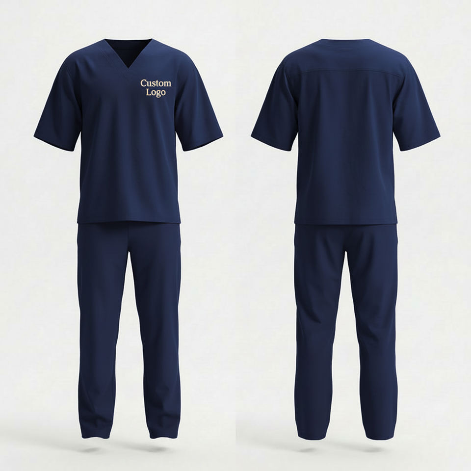 Custom Logo Woven ODM Medical Scrub Set V-Neck Top & Pants Comfortable Breathable Hospital Nursing Doctor Uniform Wholesale