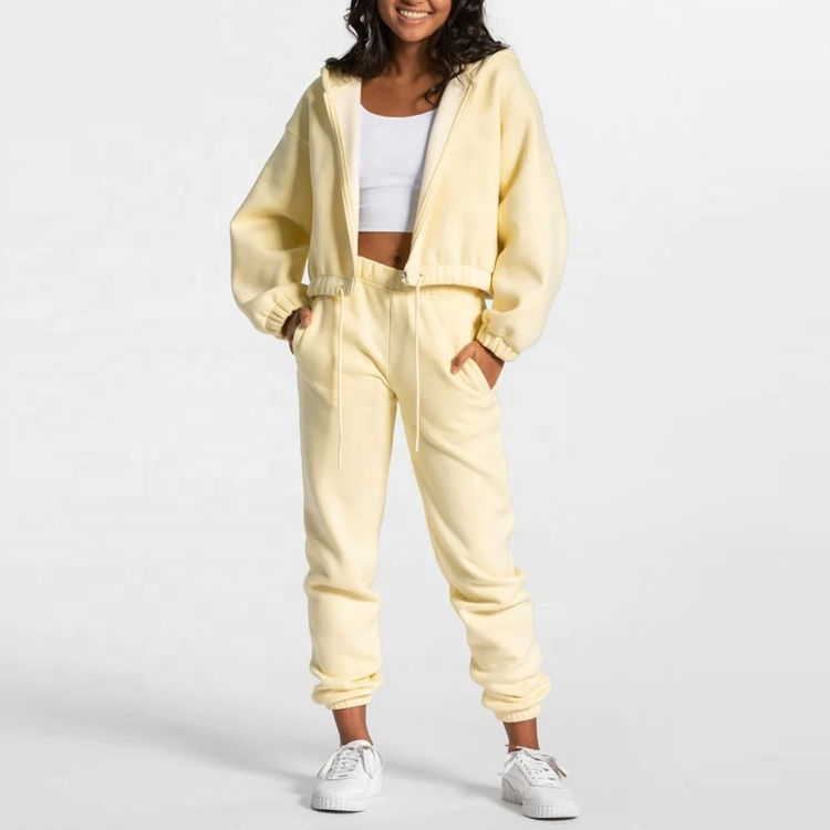 Custom Logo Zip up Crop Hoodie and Joggers Set Plain Training Oversized Fleece Sports Tracksuits Sweat Suit for Men Women