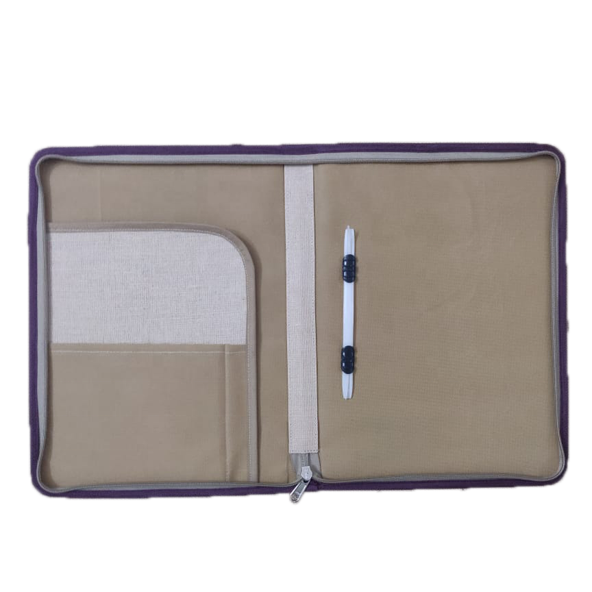 Custom Logo Zipper Jute Cotton Waterproof Document Bag for Office Supplies and Business Travel File Folder Organizer