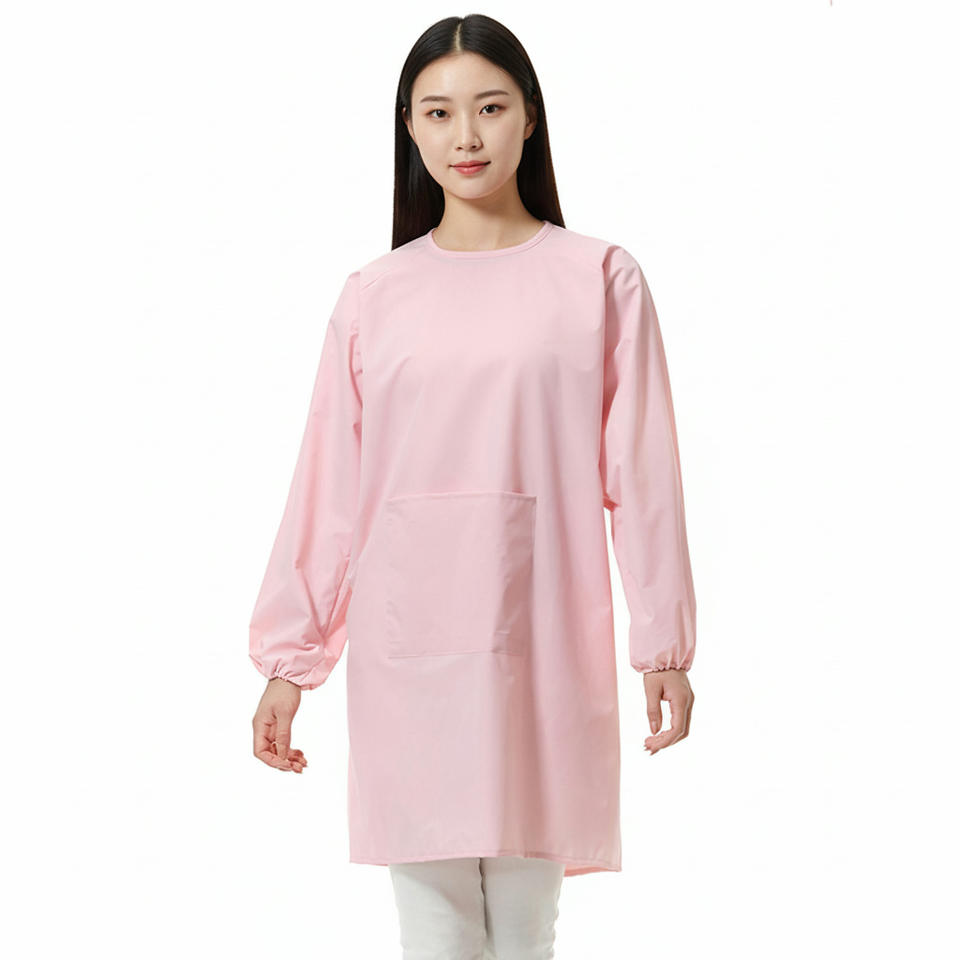 Custom Long Sleeve Apron Solid Color Durable Waterproof For Daily Use With Pocket And Tie Design