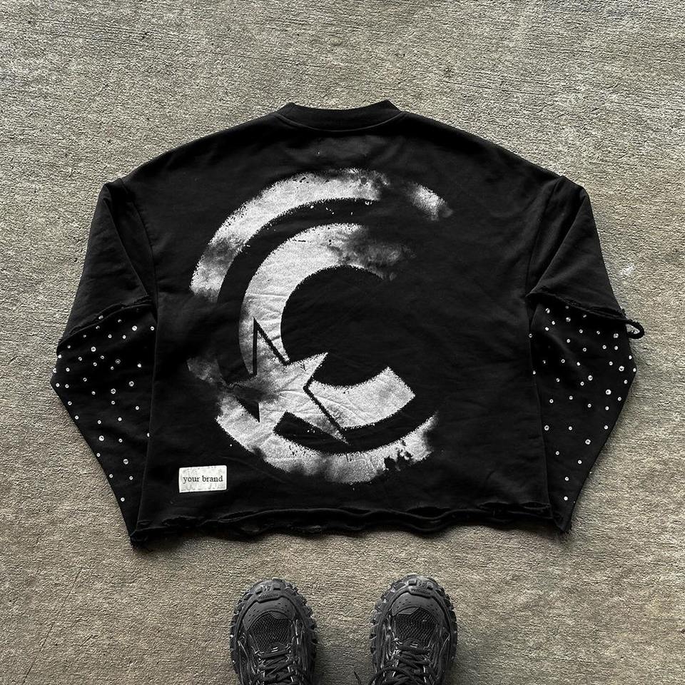 Custom Long Sleeve Double Layered Rhinestone T Shirt