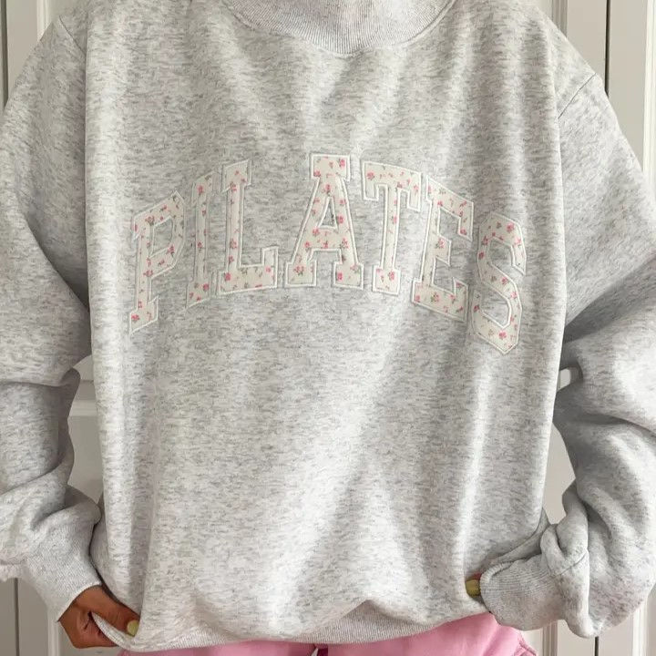 Custom Long Sleeves Loose Pearl Grey Mockneck Pilates Embroider Pullover Sweatshirts Manufacturer for Women