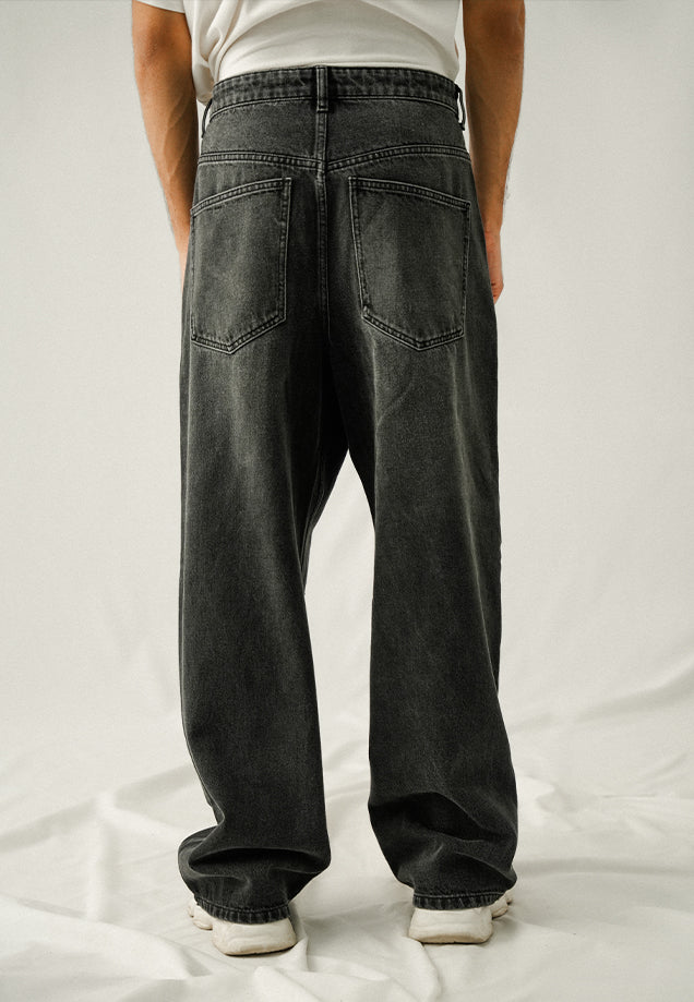 Custom Loose Fit Baggy Denim Trousers Black Stone Wash Pants Breathable High Quality Customized Fashion Cotton Denim Pants