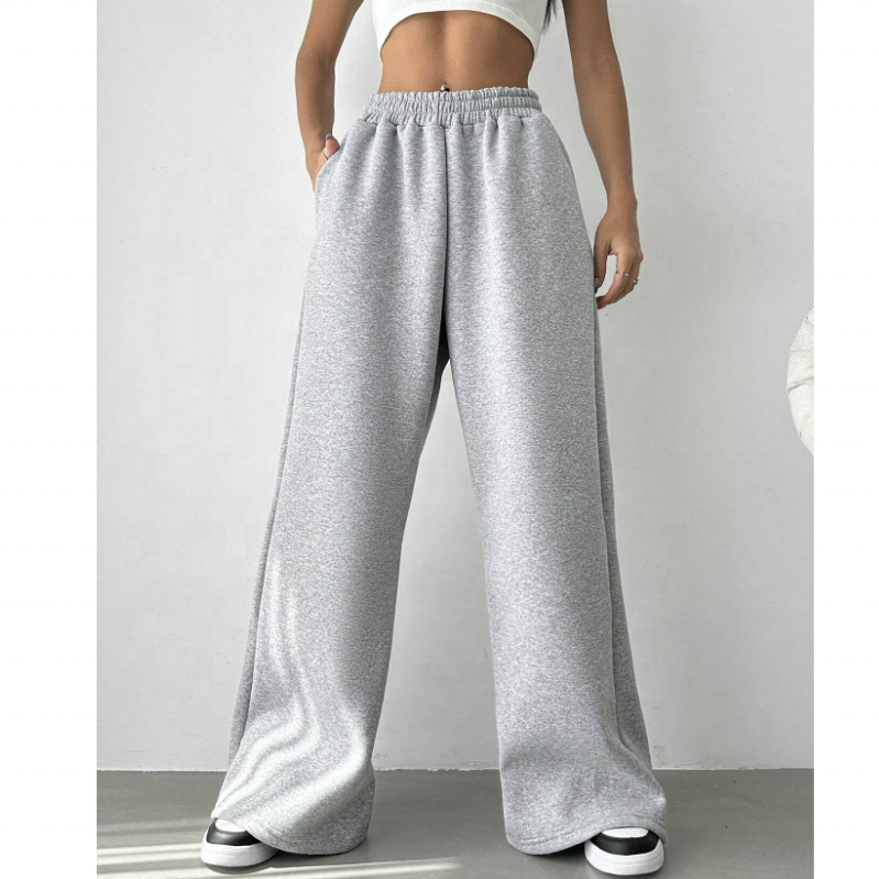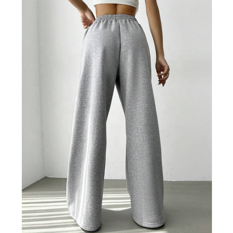 Custom Loose Women's Sweatpants Polyester/Cotton Fleece Terry Double Waist Straight Flat Front Lace Comfortable Anti-Wrinkle