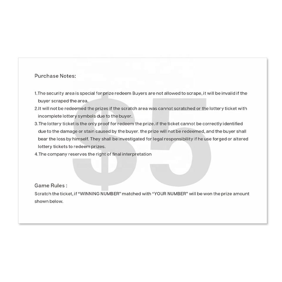 Custom Lottery Ticket New Design Provide Samples Screen Printing Match the Winning Numbers to Win