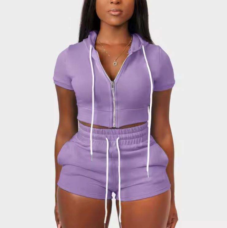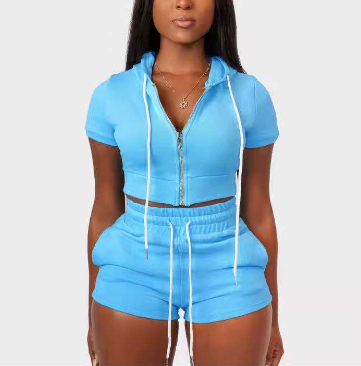Custom Loungewear Women Sets Loose Breathable Summer Cotton2 Piece Outfits Short Sleeve Hoodie Tops Shorts Sets Women Twin Set
