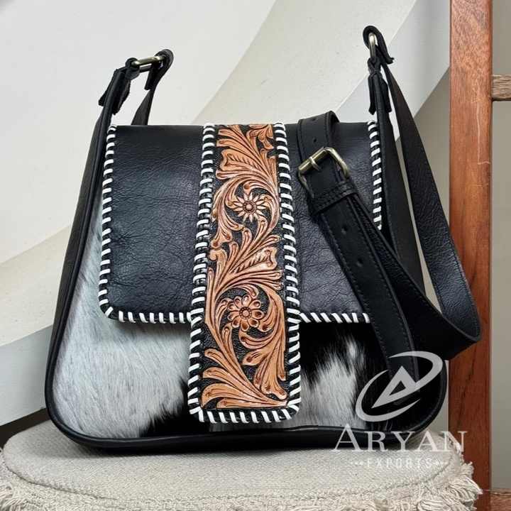 Custom Low MOQ Trendy Handbags Hand Tooled Leather Crossbody Purse Luxury Cowhide Leather Shoulder Messenger Bag for Women's