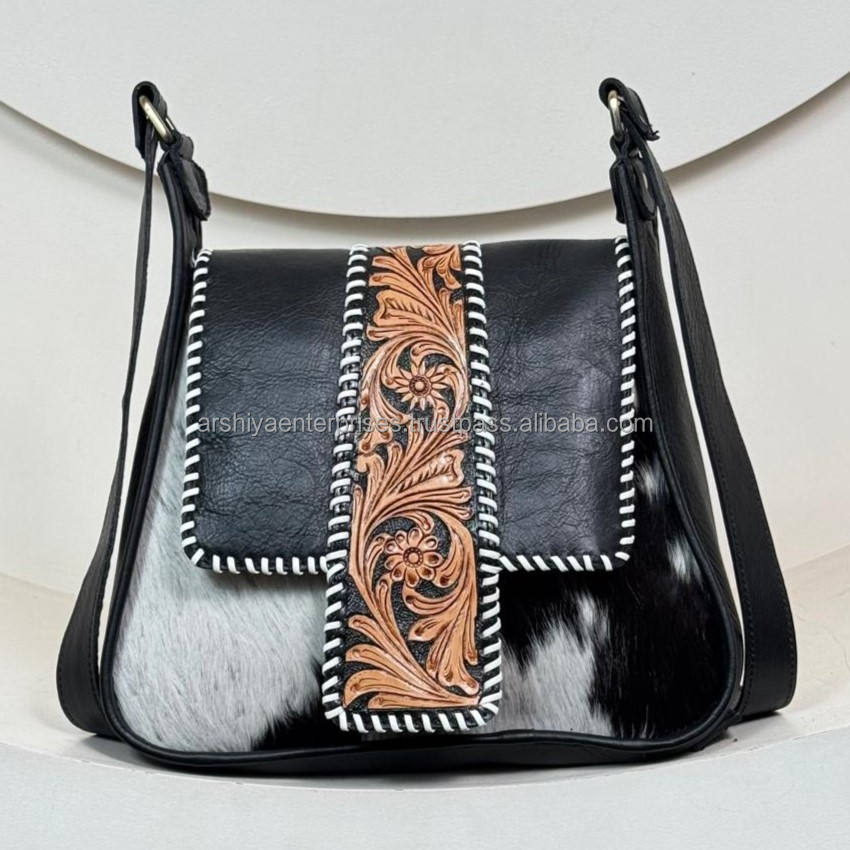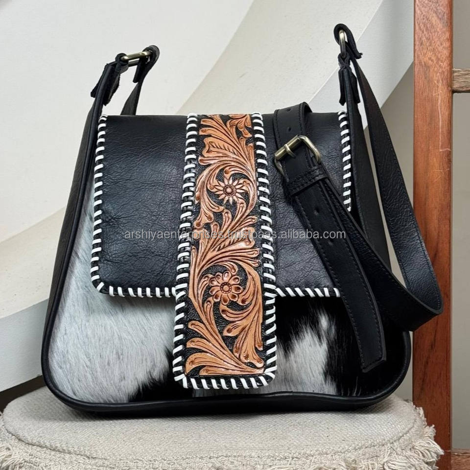 Product name:Hand Tooled Cowhide Leather Crossbody Bag