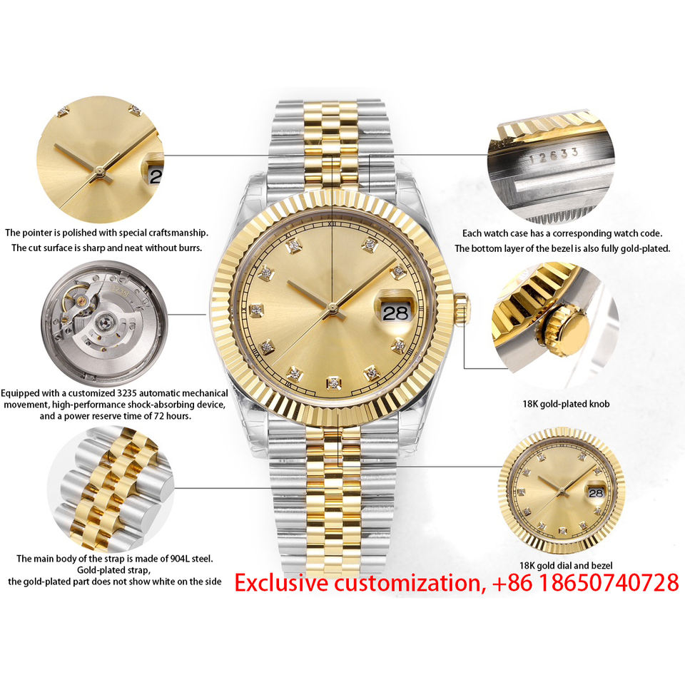 Custom Luxury 18K Gold Automatic Mechanical Watch by Jewelry Designer Yellow Gold Band Material Made in China