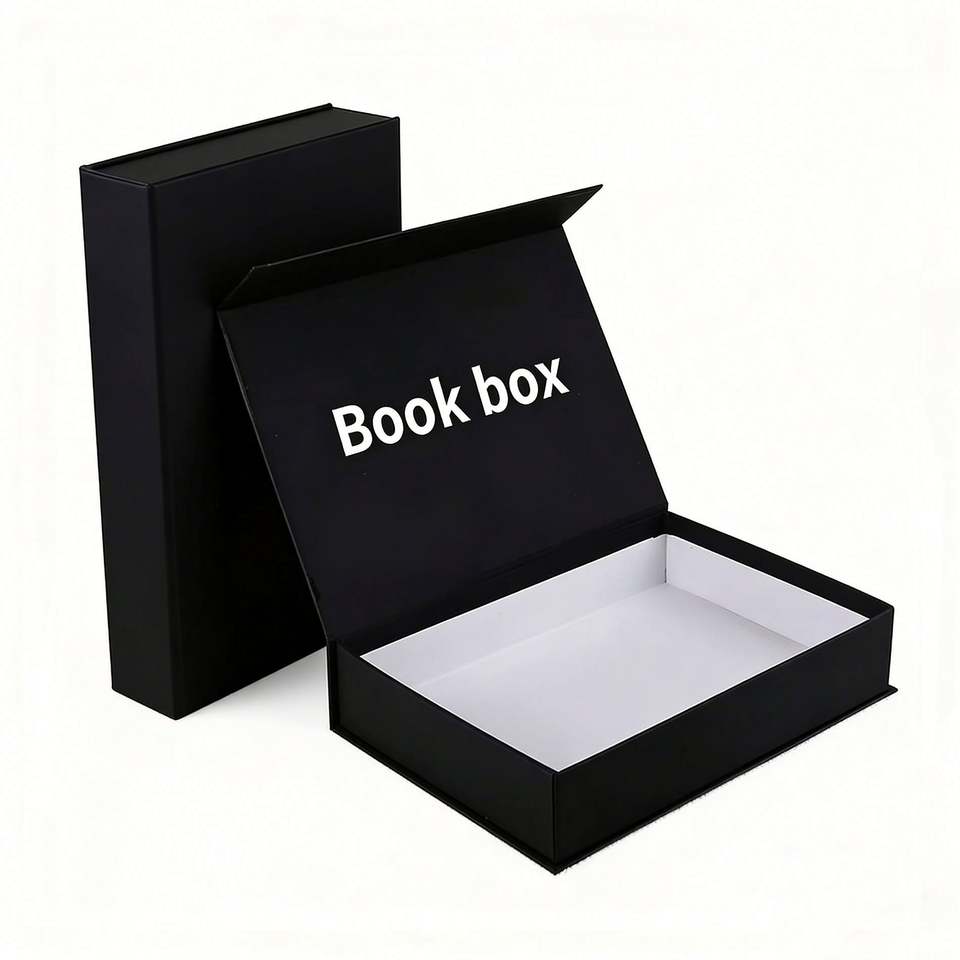 Custom Luxury Black Rigid Book Box With Magnetic Closure Ideal for Premium Book & Gift Packaging