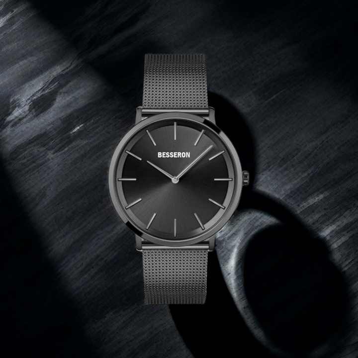 Custom Luxury Charm Men's Watch Black Stainless Steel Mesh Bracelet 40mm Analog Dial 20mm Band Quartz Water Resistant 5BAR