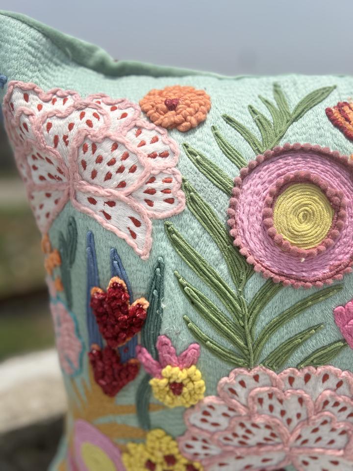 Custom Luxury Square Hand Tufted Floral Design Cotton Sublimated Printed Hotel Home Decorative Sofa Pillowcase Soft Cushion