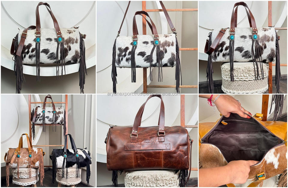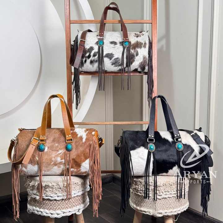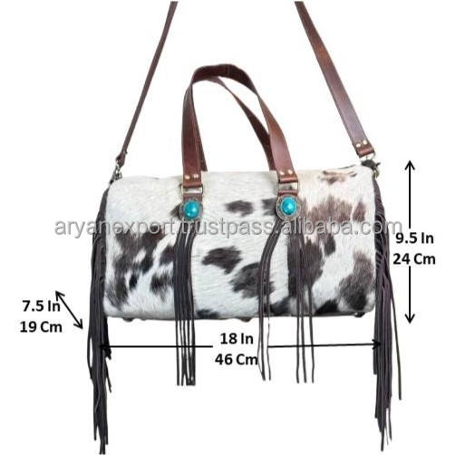 Custom Luxury Cowhide Leather Fringe Duffle Bag with Trolley Sleeve Fashionable Gym Bag Sports Overnight Weekender Travel Bags