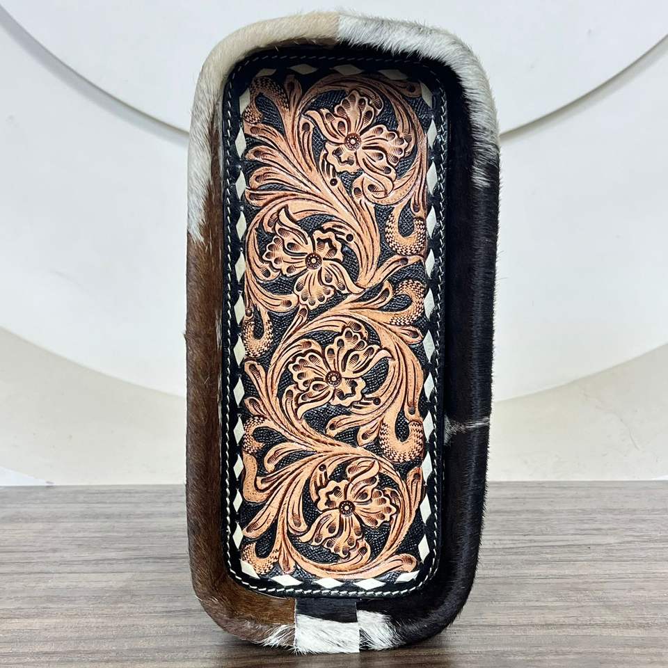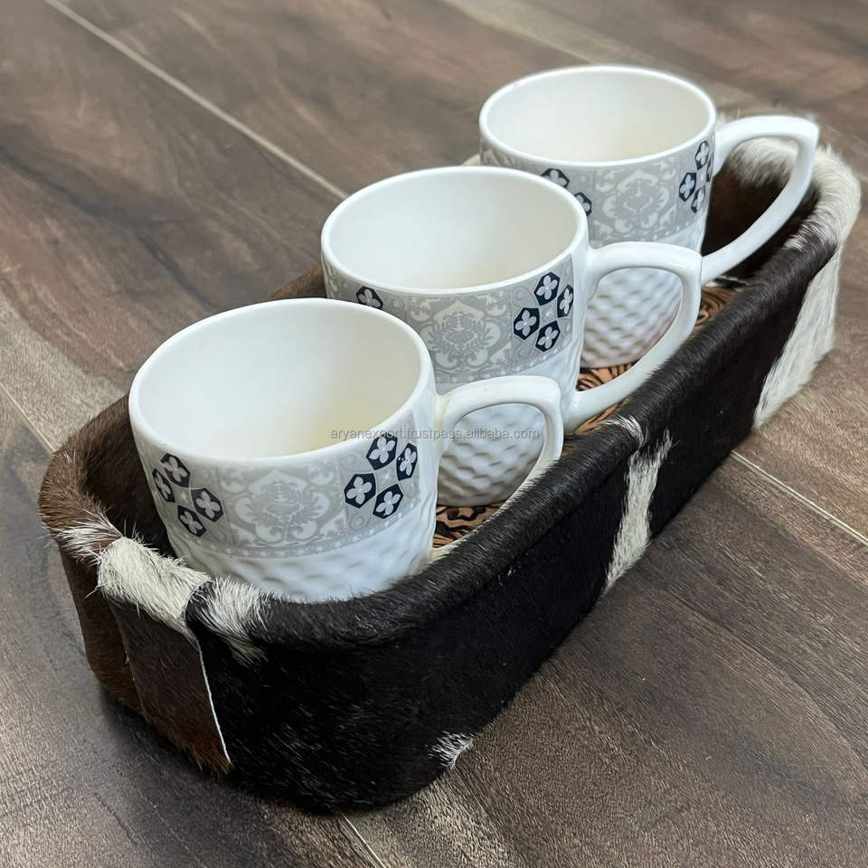 Custom Luxury Design Handcrafted Tooled Cowhide Leather Tray Western Style Organizer Decorative Storage Gift for Home Office Use