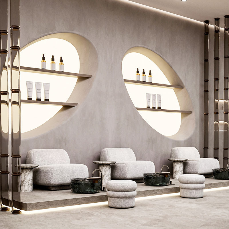 Custom Luxury Hair Salon 3D Interior Design Modern Mirror Station Barber Shop Furniture