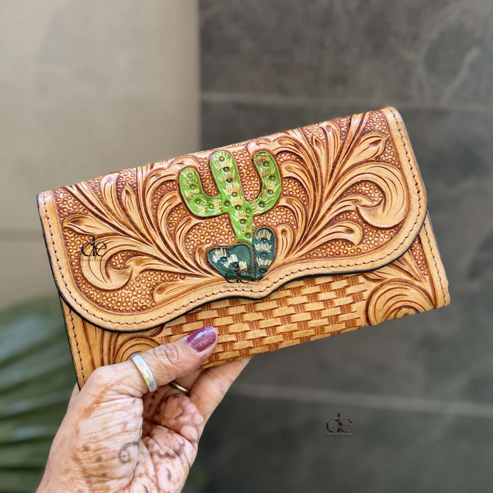 Custom Luxury Hand Tooled Carving Clutch Phone Case Stylish Genuine Leather Hot Sale Wallet Multi Uses Western Leather Wallet