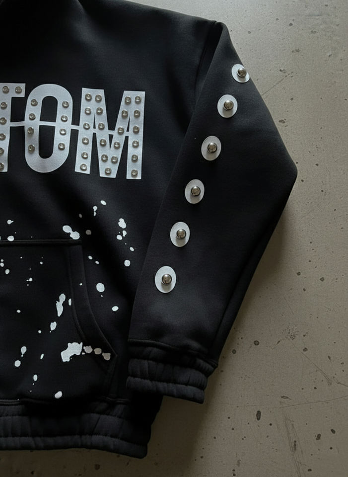 Custom Luxury Heavyweight Fleece Terry Zip-Up Hoodie, Studded Design with Screen Printed Logo, Oversized Boxy Fit, Unisex