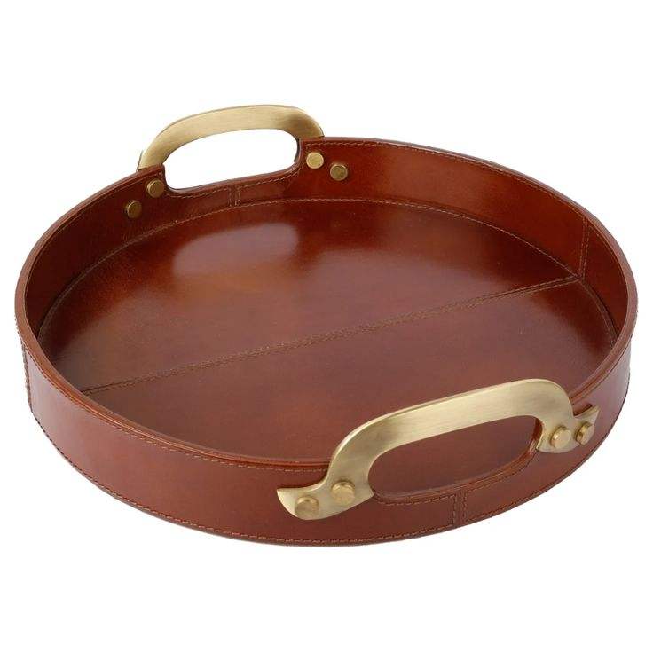 Custom Luxury Hotel and Home Leather Round Tray With Handle PU Tea Coffee Serving Tray