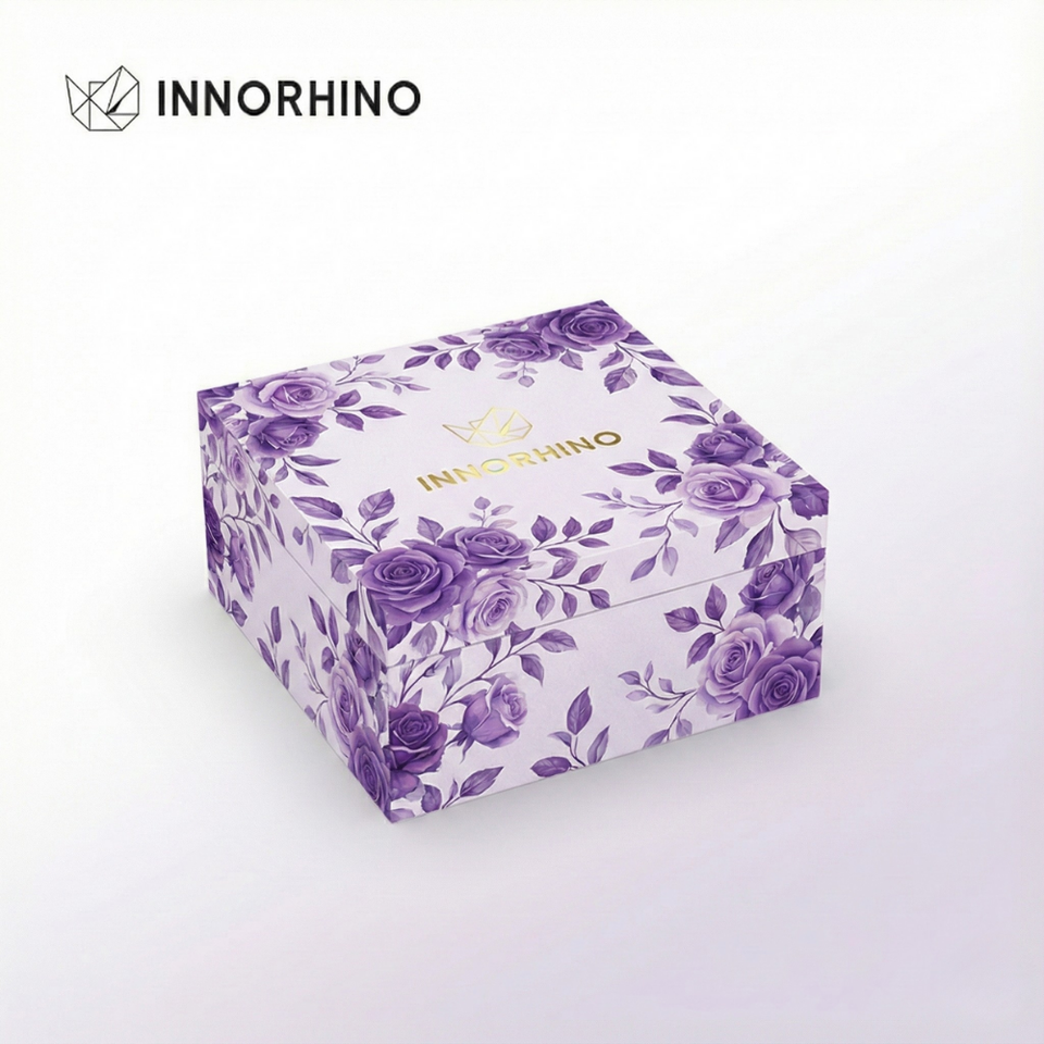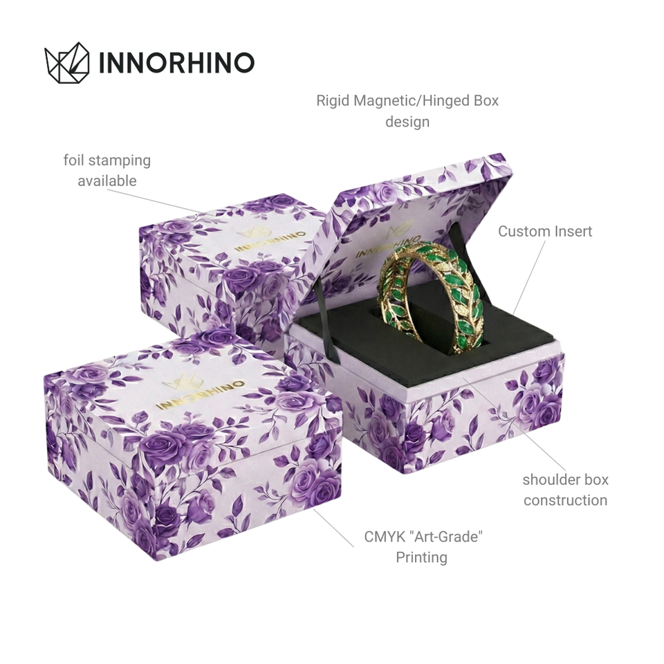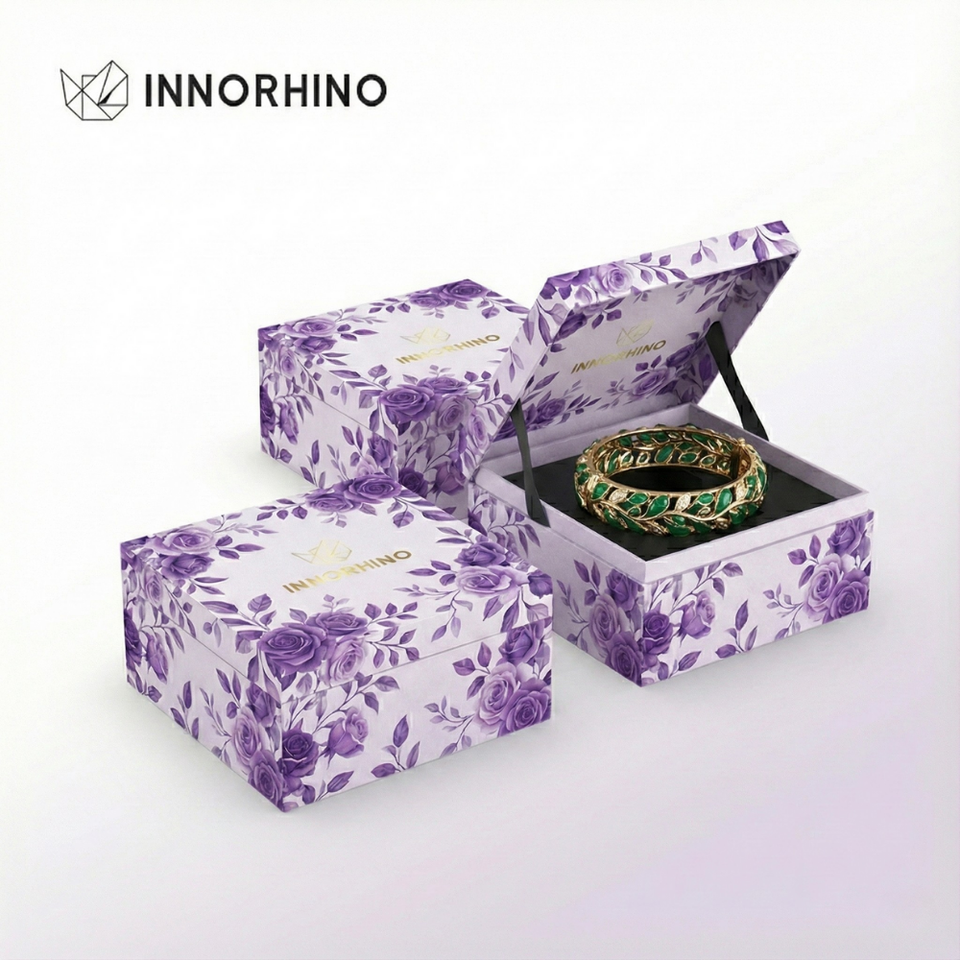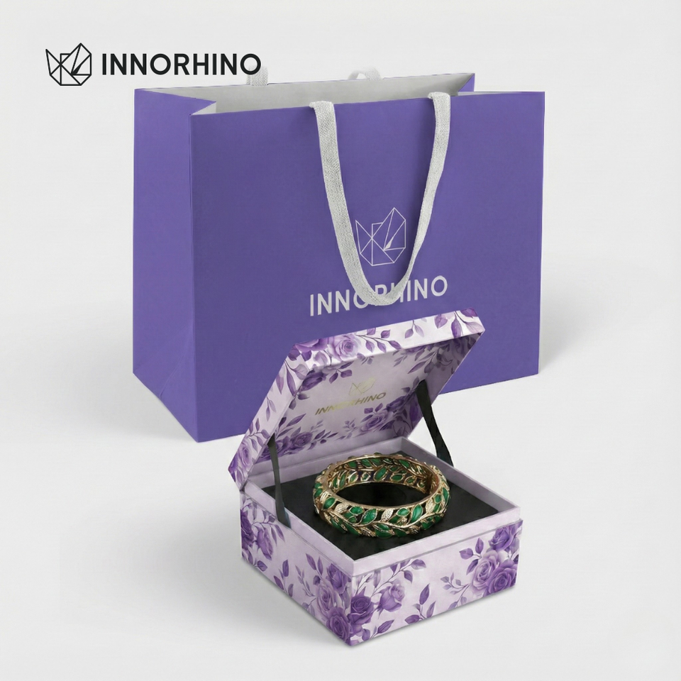 Custom Luxury Jewelry Packaging Set | Floral Printed Rigid Box with Matching Paper Bag | Bangle & Necklace Gift Box