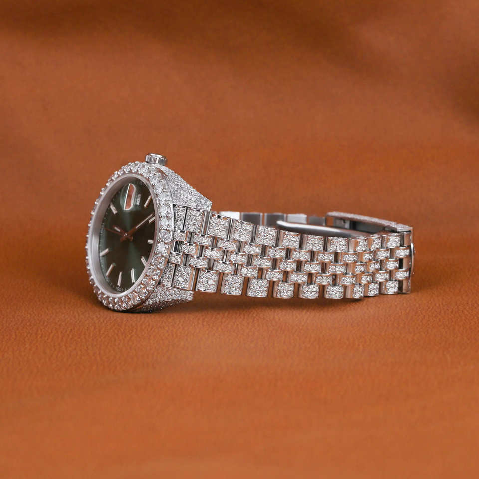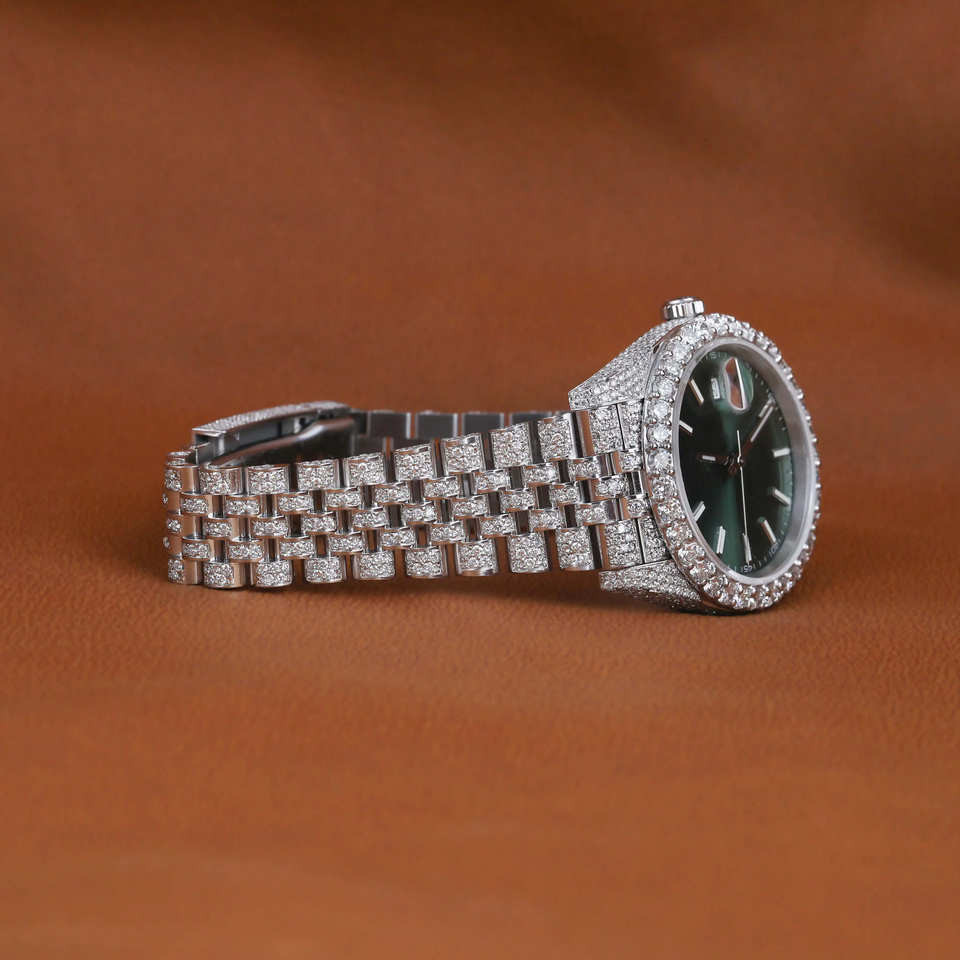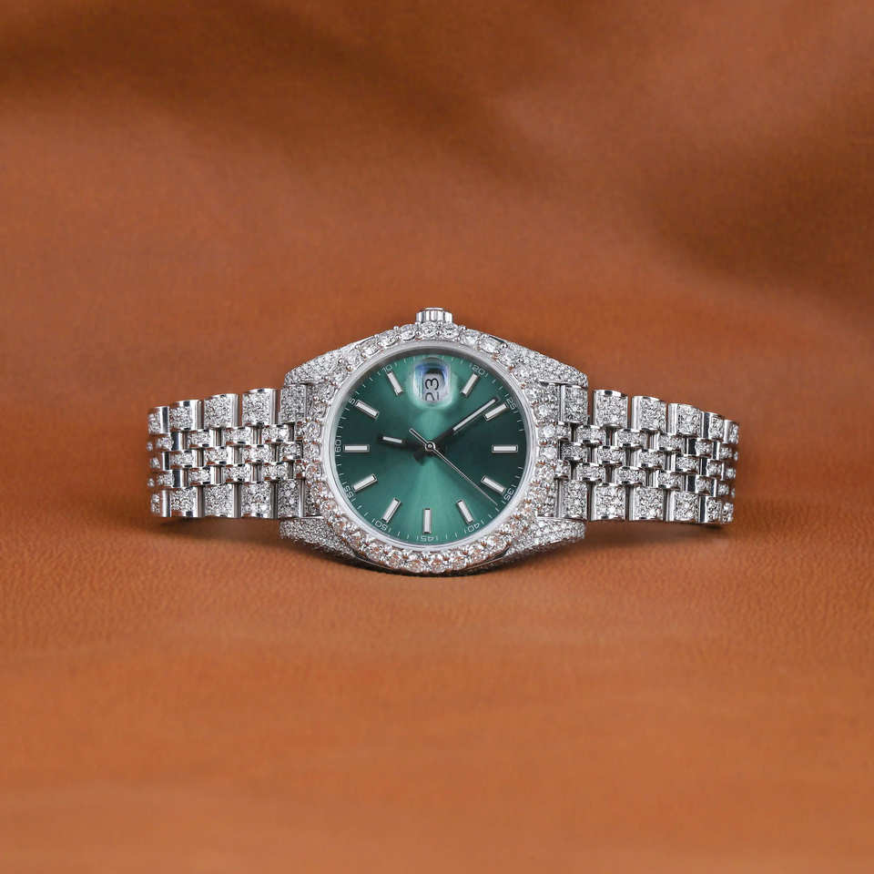 Custom Luxury Lab Grown Diamond GREEN Dial Round Shape Full Iced Out Automatic Wrist Luxurious Watch to Classic Wear