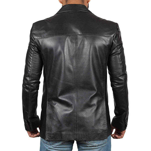 Custom Luxury Leather Varsity Jacket Classic Black Semi-Casual Business Fit