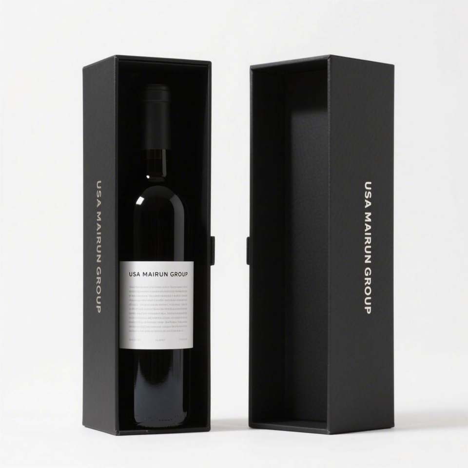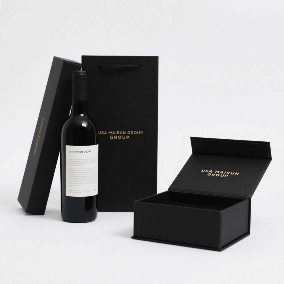 Custom Luxury Matt Black Rigid Cardboard Packaging Boxes for Liquor Set for Champagne Red Wine Bottles Glass Matt Lamination