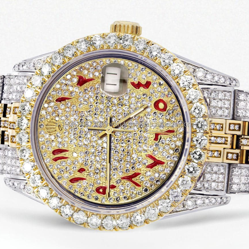 Custom Luxury Men's Mechanical Analog Wrist Watch 20mm Stainless Steel Band Cut Lab GrownDiamond Hip Hop Style Glass Dial