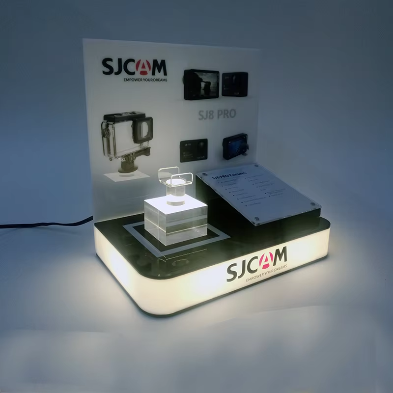 Custom Luxury Modern Eco-Friendly & Recyclable Acrylic Garment Display Stand Water Resistant LED Tabletop Electronics Store Rack