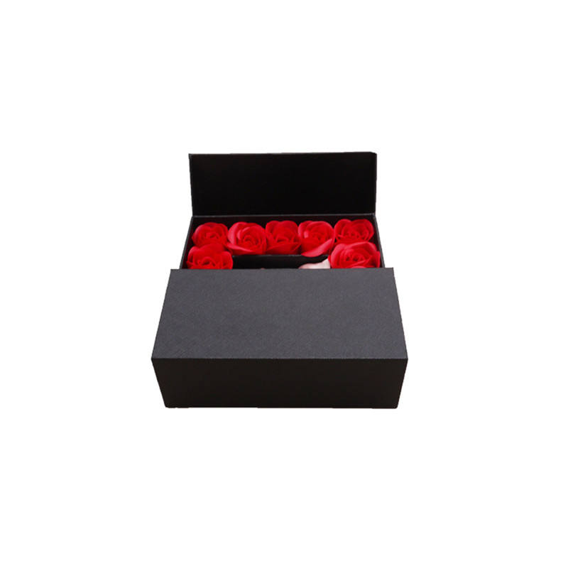 Custom Luxury Paper Gift Box Black Flower Real Rose Box with Jewelry Double Door With Drawer Flower Gifts Box