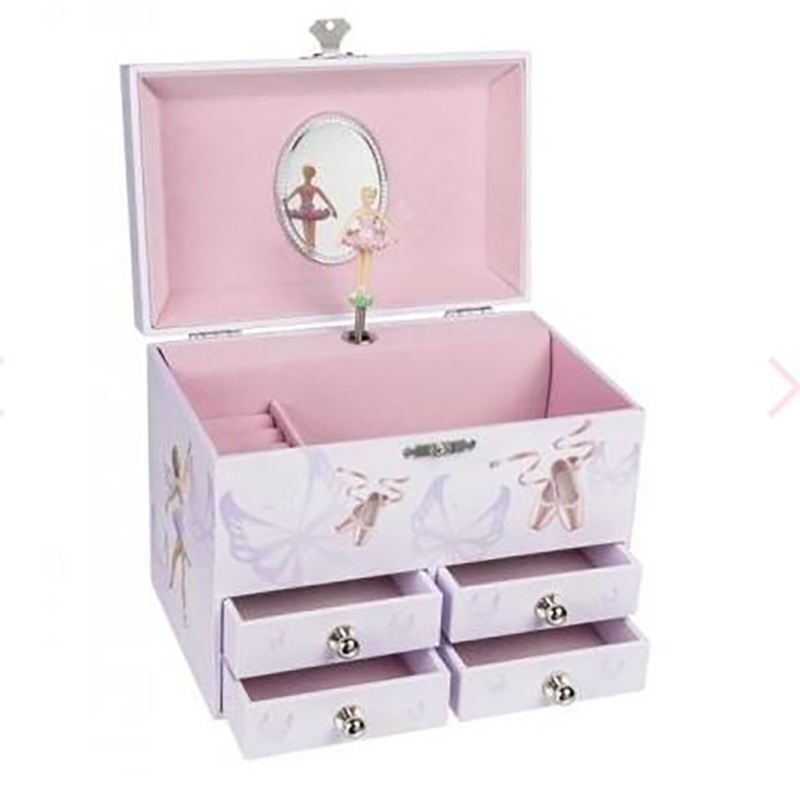 Custom Luxury Pink Ballerina Wooden Music Box New Design Luxury Jewellery Organizer Storage for Girls