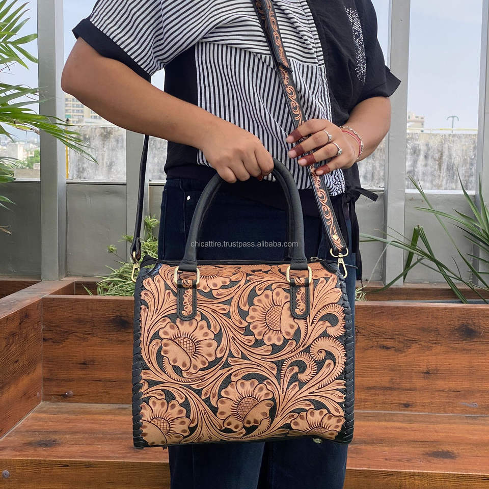 Custom Luxury Promotional Genuine Tooled Leather Luggage Mini Travel Sport Shoulder Gym Hair On Cowhide OEM Overnight Duffle Bag