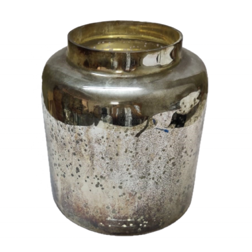 Custom Luxury Red Silver Mercury Flower Vase Pot Handmade High Quality Home Decor Glass & Crystal Decorative Candle Jars Vessel