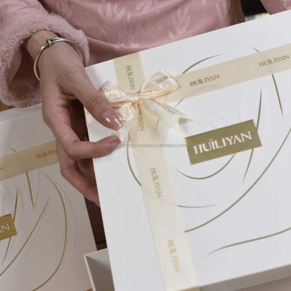 Custom Luxury Rigid Boxes for Skincare Packaging with Matt Lamination Coated Paper Lid Base Gift Box and Custom Ribbon