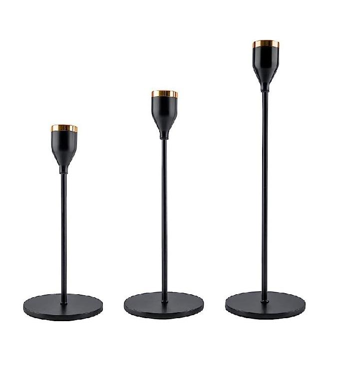 Custom Luxury Simplicity Taper Candleholders Matte Black Metal Pillar Candle stands for Wedding and Christmas Ornament