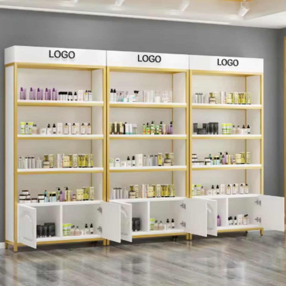 Custom Luxury Skincare Salon Nail Display Rack Cosmetic Shop Display Cabinet Shelf