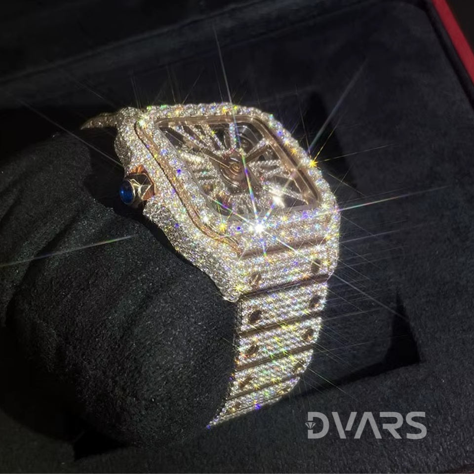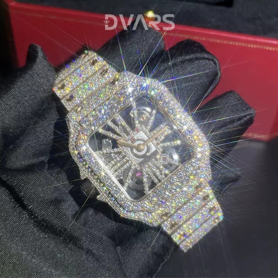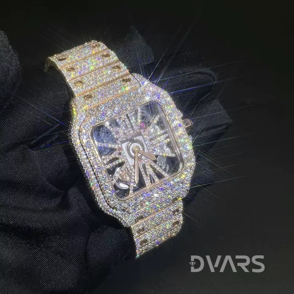 Custom Luxury Stainless Steel Full Diamond Watch Yellow Bling Hip Hop Style Analog VVS Moissanite Mechanical ETA Glass White