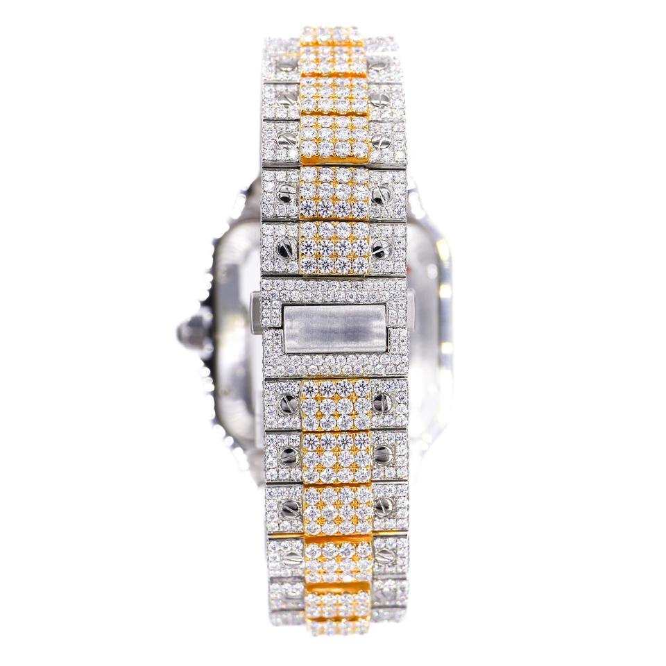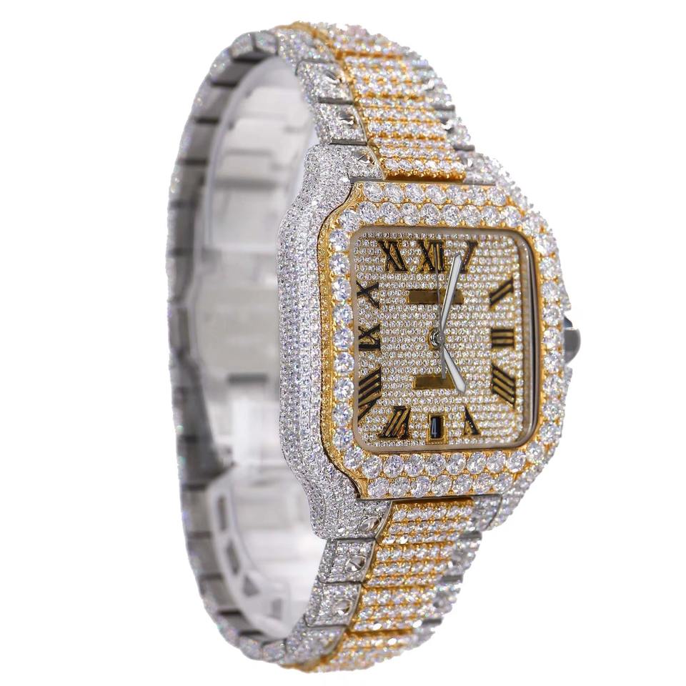 Custom Luxury Stainless Steel Square Fashion Diamond Fully Iced Moissanite Quartz Glass Dial 41mm Roman Numeral Lightweight