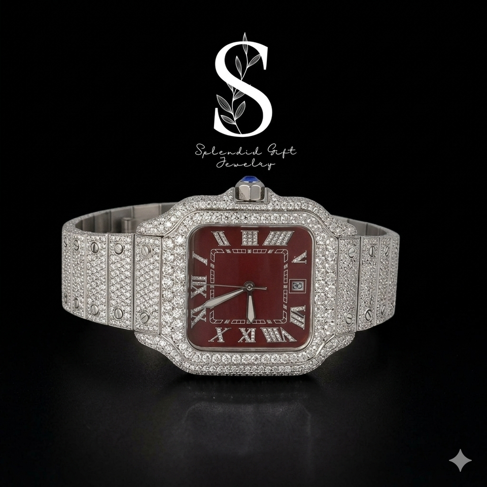 Custom Luxury Steel Watches Sparkling Full Diamond Watches VVS Moissanite Watch for Men From Indian Supplier