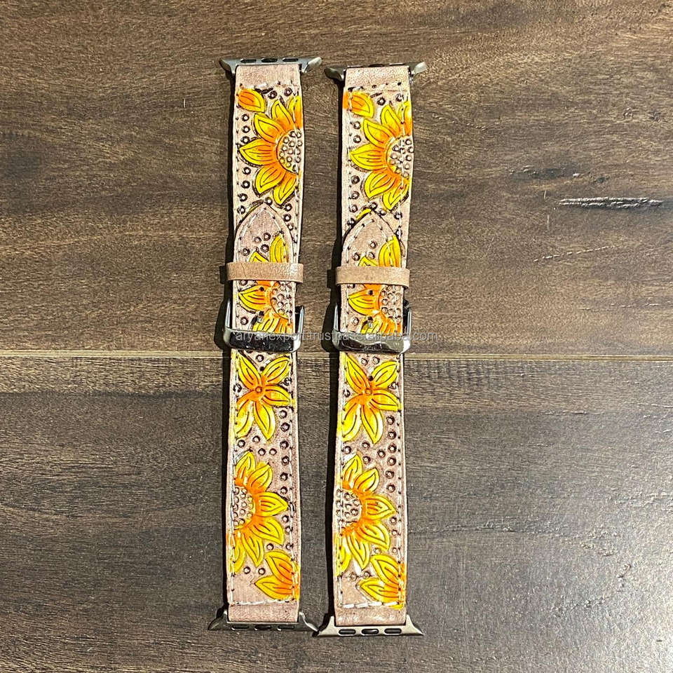 Custom Luxury Sunflower Design Hand-Tooled Genuine Leather Watch Straps Quick Release Smart Watch Durable Wristband for Unisex