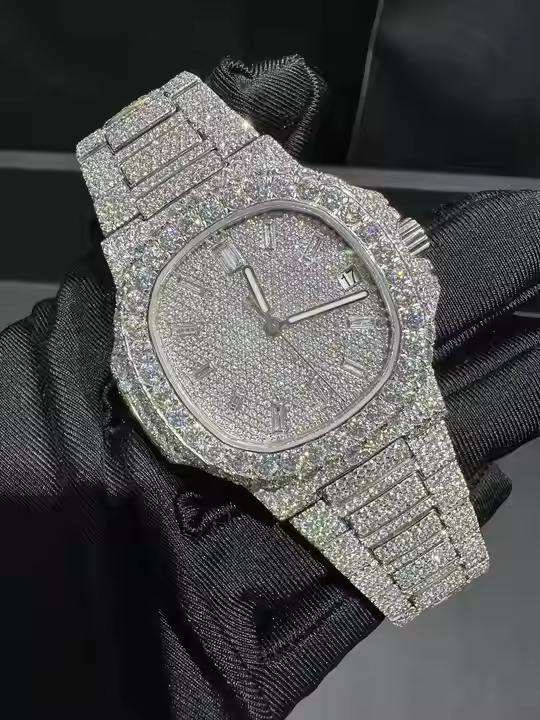 Custom Luxury Vintage Square Stainless Steel Mechanical ETA Moissanite Watch for Resale