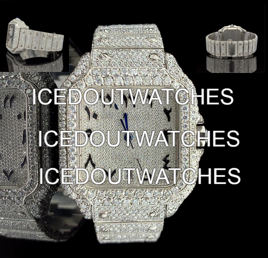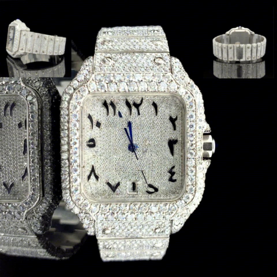 Custom Luxury White Gold Square Dial Glass Moissanite Diamond Bust Down Mechanical Hip Hop Iced Out Wrist Watch for Men