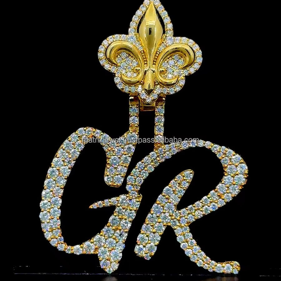 Custom Luxury Women Alphabet Two Letter Iced Out Moissanite Custom Logo Bail Art Cursive Initial Pendant Diamond Letter Necklace