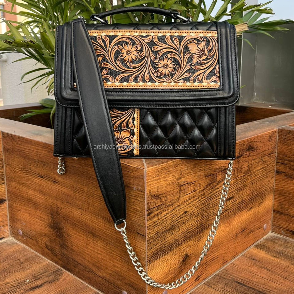 Product name:Hand Tooled Diamond Lattice Chain Crossbody Bag